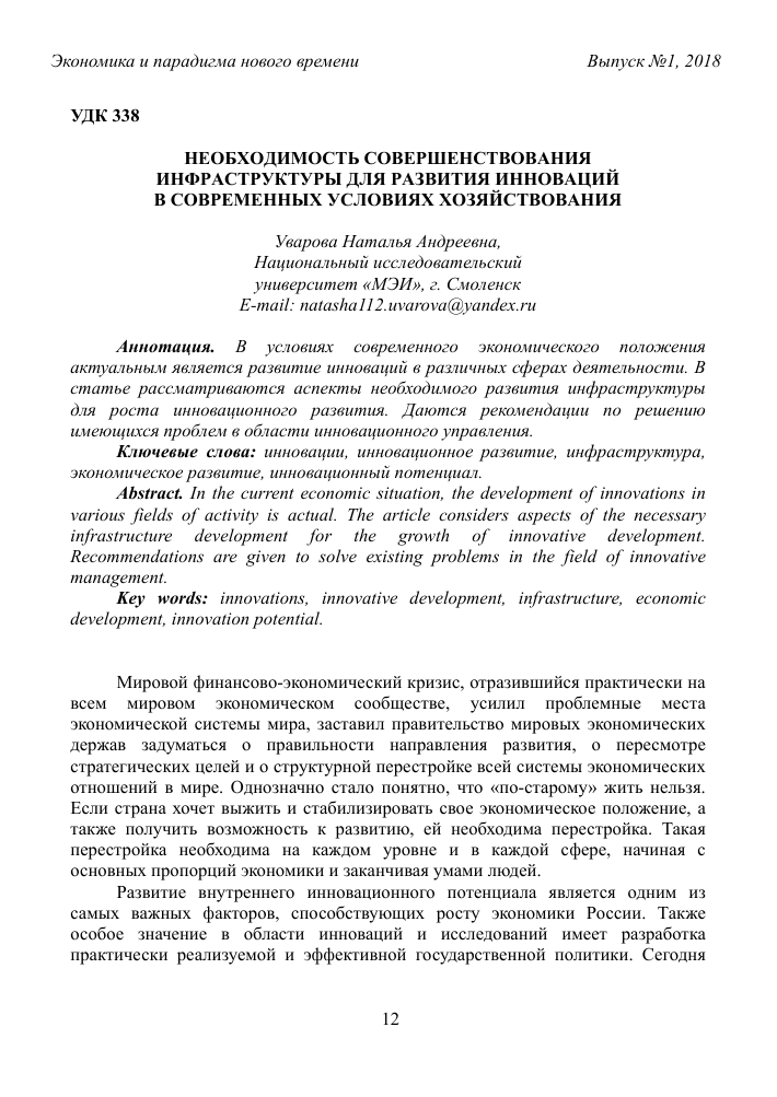 Необходимость развития инфраструктуры