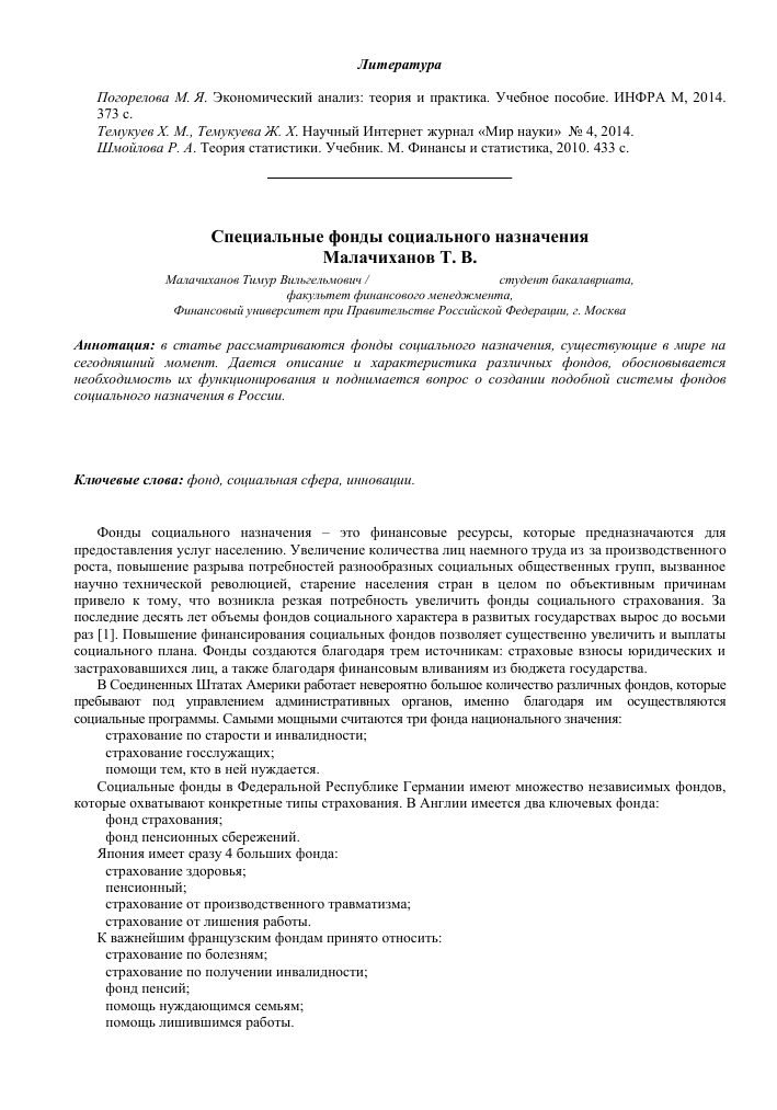 Создание специальных фондов